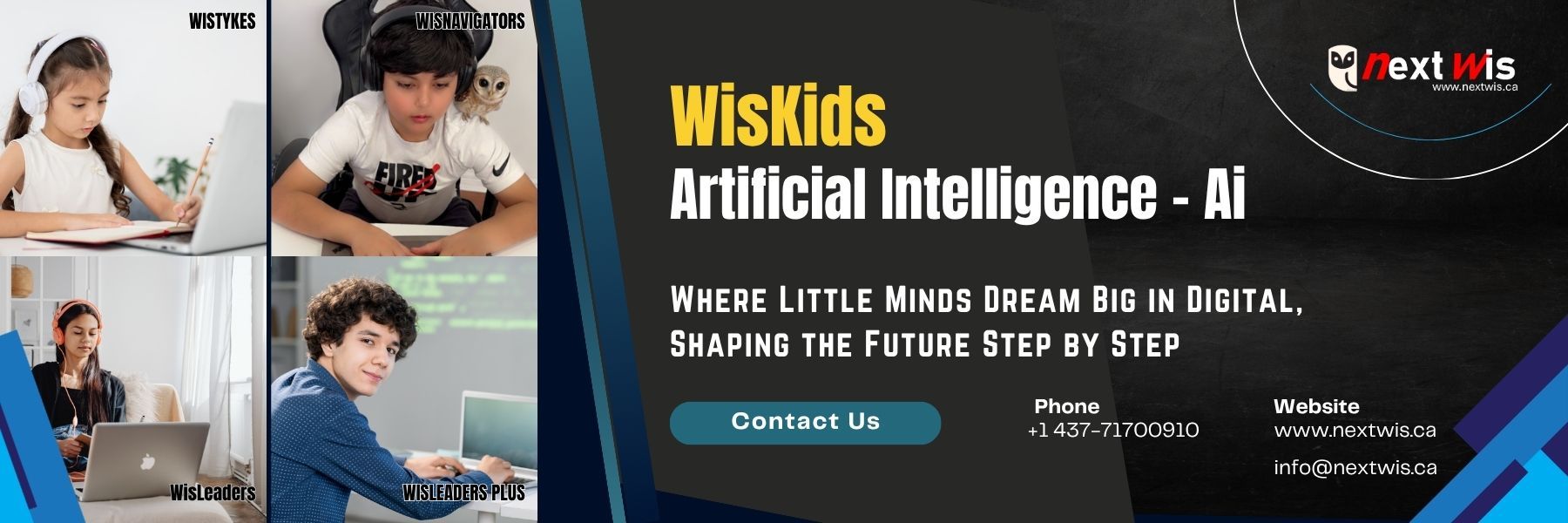 The "WisKids" Program sparks creativity and digital skills in children and teens across 4 age groups. Students explore technology, develop Python coding skills, build artificial intelligence applications, think critically, and confidently navigate the digital world through fun, hands-on projects