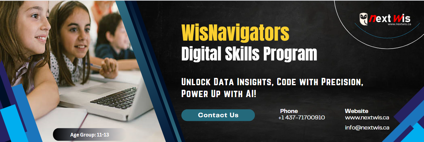 The WisNavigators Course helps middle school students (ages 11–13) develop Python coding, Ai, data analysis, and software development skills through hands-on projects. Students gain confidence in applying Ai to real-world problems, building basic applications, and using technology safely and responsibly.