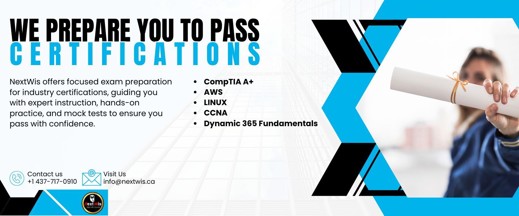 NextWis exam prep courses provide exam-focused knowledge and practical skills. Here’s what to expect: